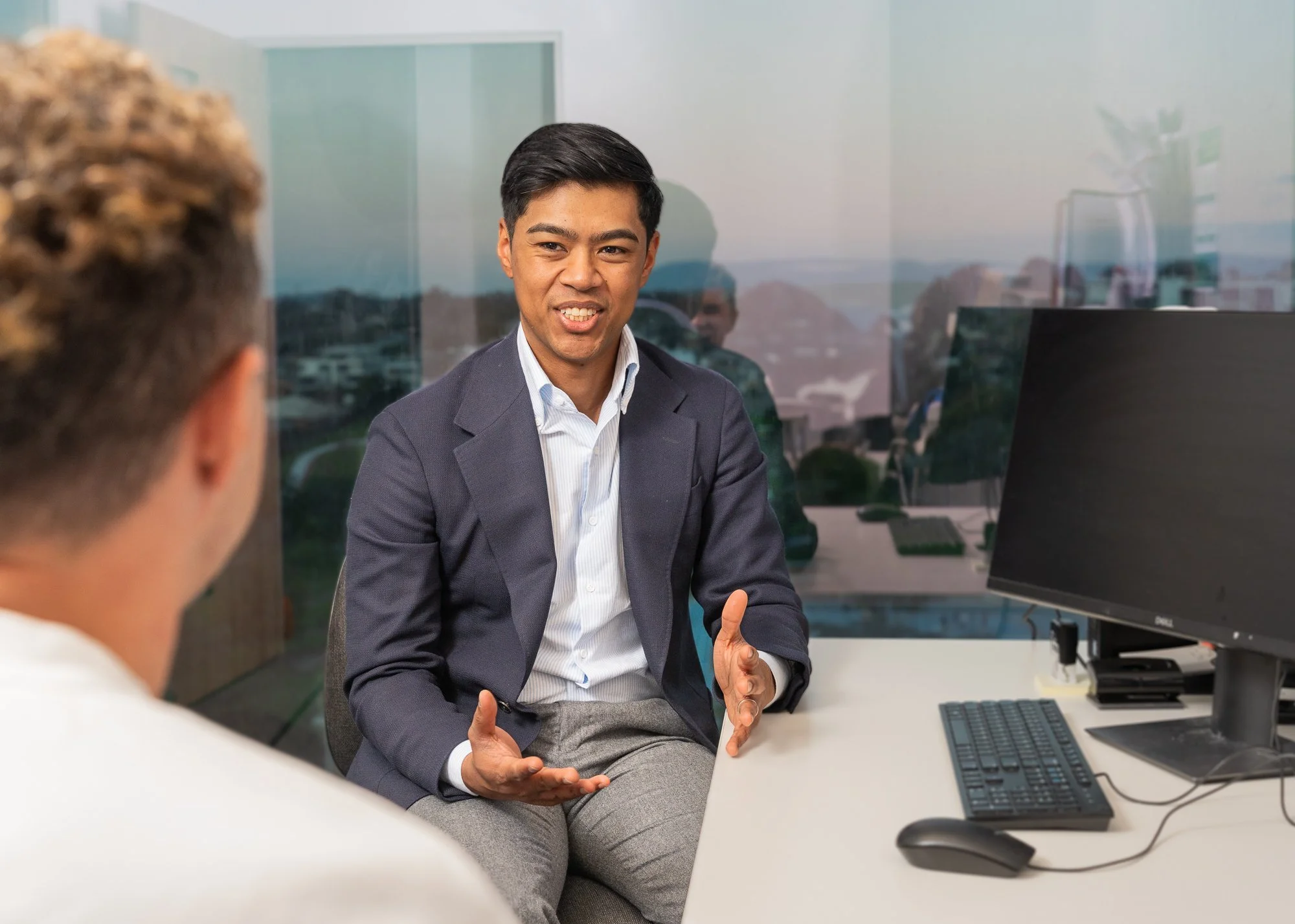 Dr Selva engaging in natural consultation dialogue - ideal banner image with space for text overlay on the right side