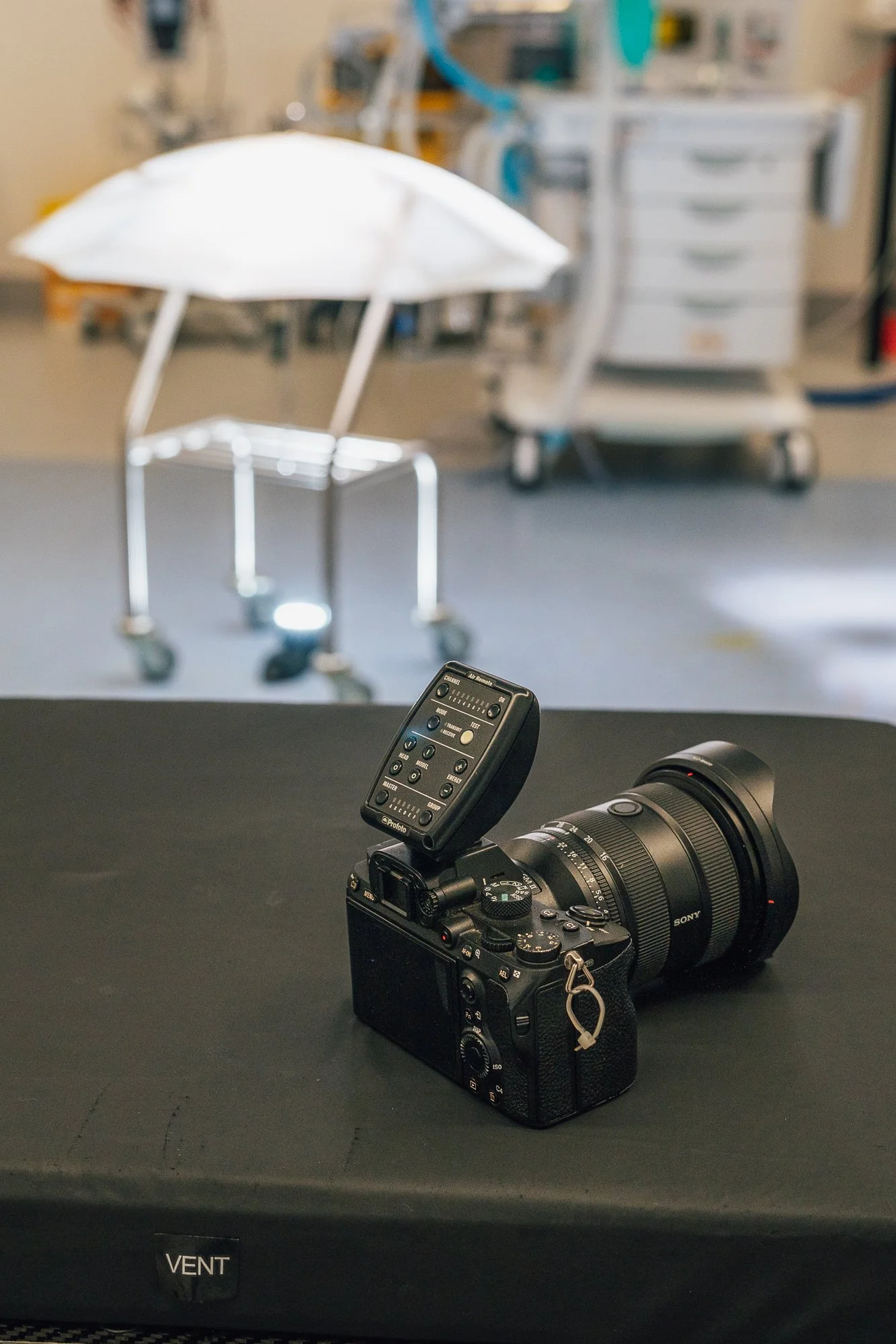 Working in an operating theatre presents unique lighting challenges for photographers. The space is designed for surgical precision, not photography, which means we need to bring our own lighting solutions while respecting the sterile environment and working around complex medical equipment.